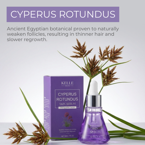 Unlike harsh chemicals, razors, or expensive laser treatments, Cyperus Rotundus serum by Kelle works gently with your skin's natural processes to gradually slow hair regrowth - without irritation or side effects.